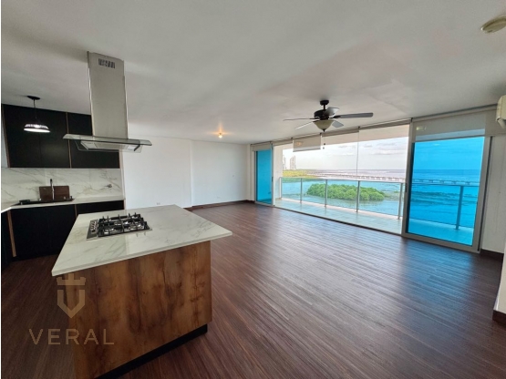 Amplia sala y comedor con vista al mar